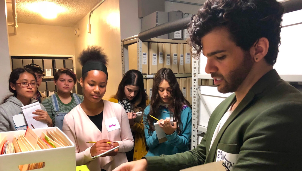 ONE Archives Foundation mentors a group of 12 - 24 high school students (from 200+ applications) from Los Angeles County to become ambassadors for LGBTQ+ history in their communities and schools. The program includes LGBTQ+ history presentations by community organizers, discussions on LGBTQ+ topics, research and workshops, field trips to LGBTQ+ organizations and landmarks, and the creation of an exhibition. A cohort of Youth Ambassadors participate in Youspeak Radio, an audio project exploring intergenerational dialogues led by LGBTQ+ youth.