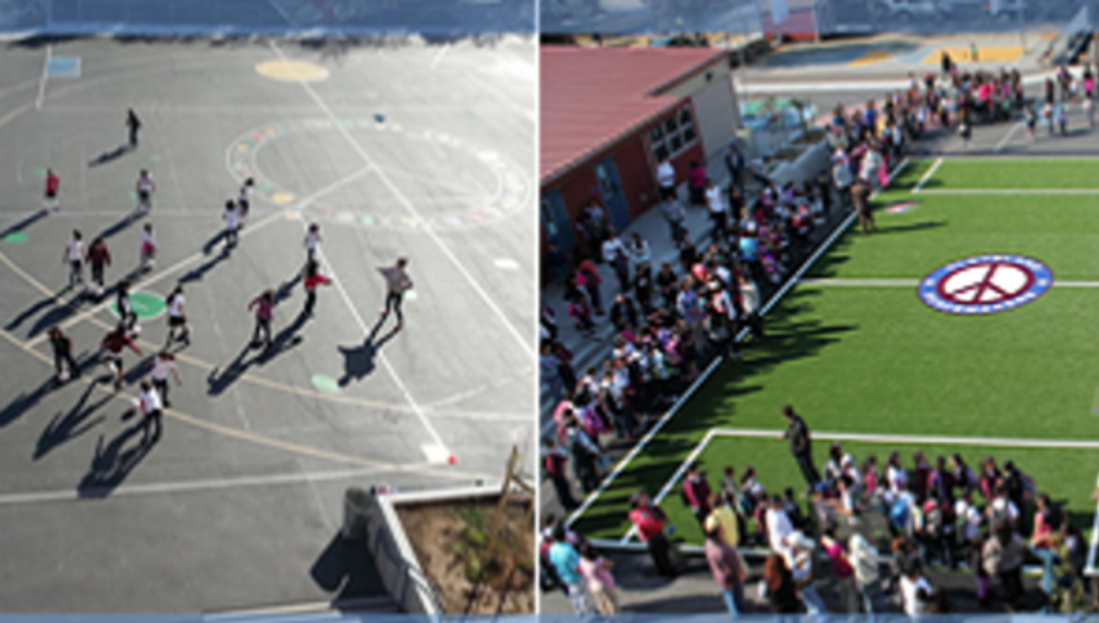 Turning school playgrounds from black top to green turf to provide a safe surface for children to experience team sports without the fear of injury.