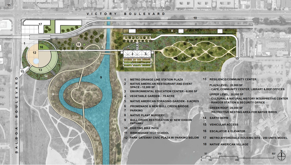 Nurture new generations of well-informed community leaders in an environmental studies center attached to a Native American restaurant located in 2000 acres of outdoor classrooms, while providing facilities that include community, resilience and interpretive centers and enhanced public access to the rich natural resources of the Sepulveda Basin.